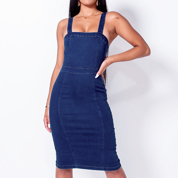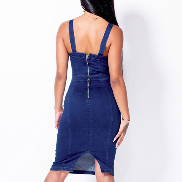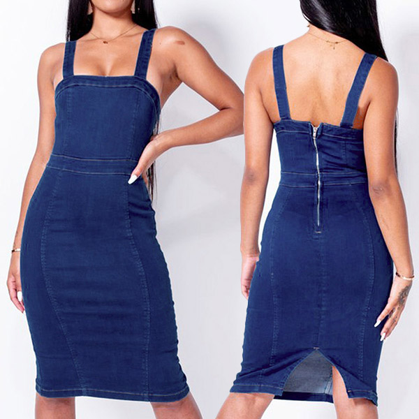 you choosing this denim dress. Sling style,finished with backless,back-slit hem and a tight silhouette,