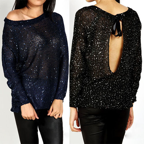 a loose silhouette,its backless and bowknot lace-up design adds some sexy elements,while its sequin