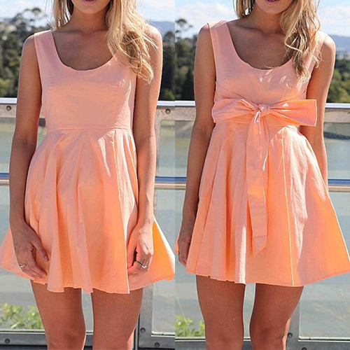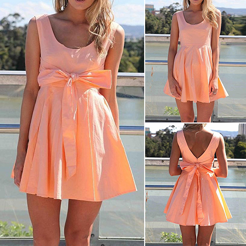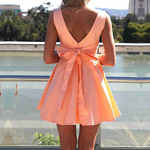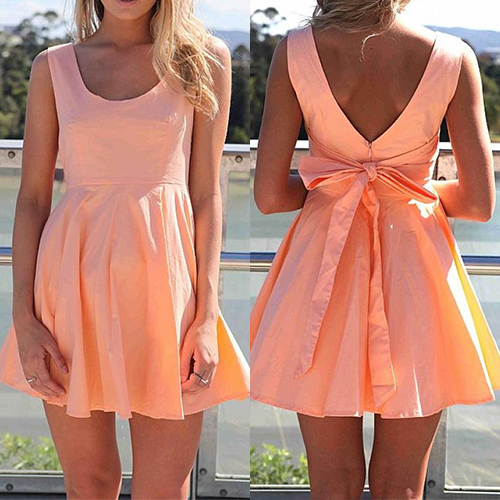 You would have a sweet and stylish look in this sleeveless dress. Solid color style,its backless design