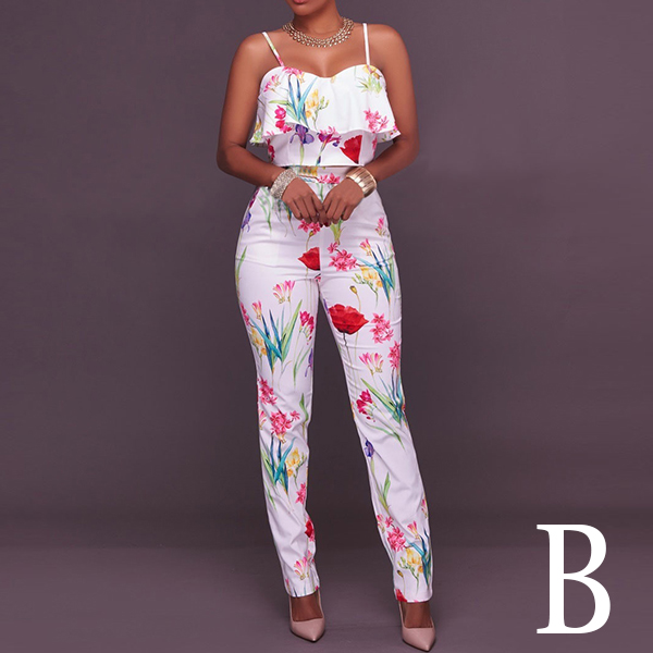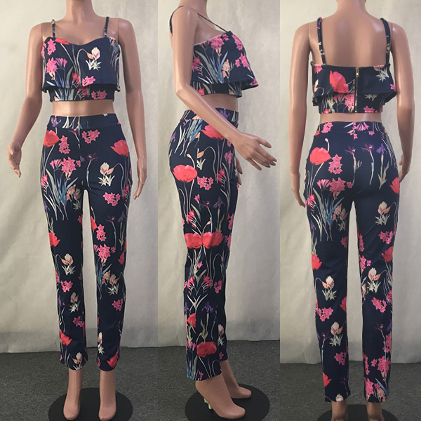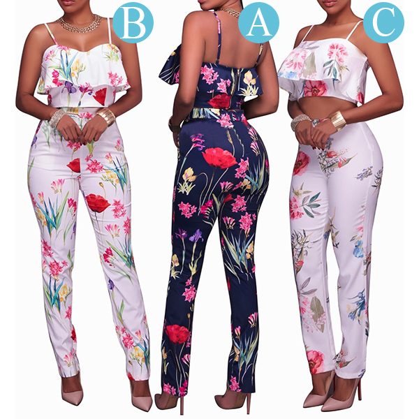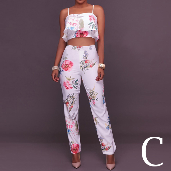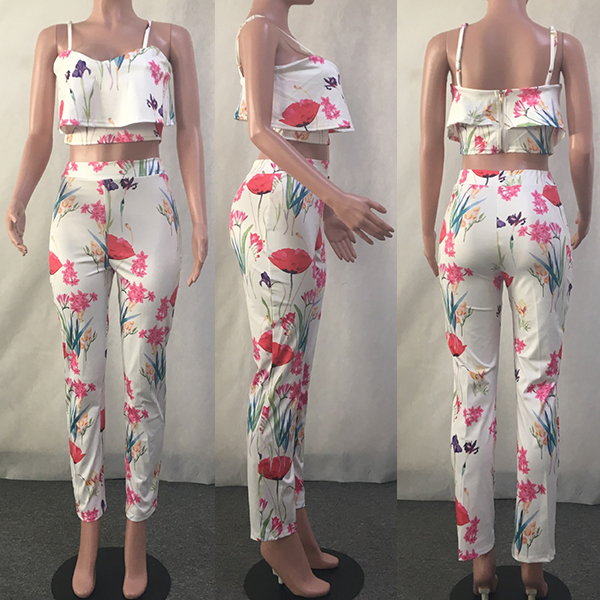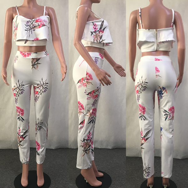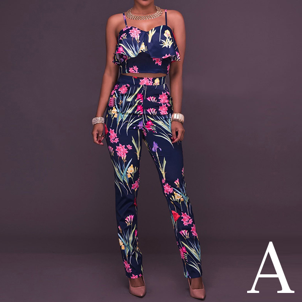 Boasts playful and vibrant floral print,including a backless cami top and a high waist pants,this two-piece set can make