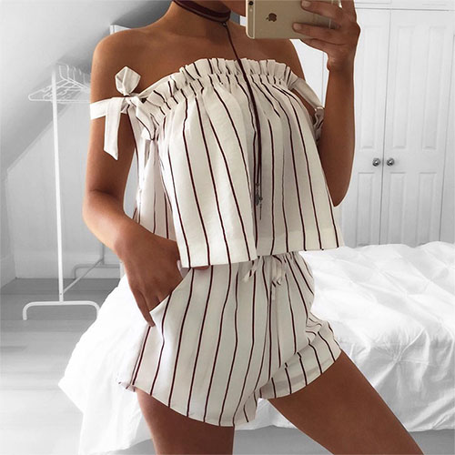 cami top and a elastic waist shorts,this two-piece set can easlily make you look effortless charming.