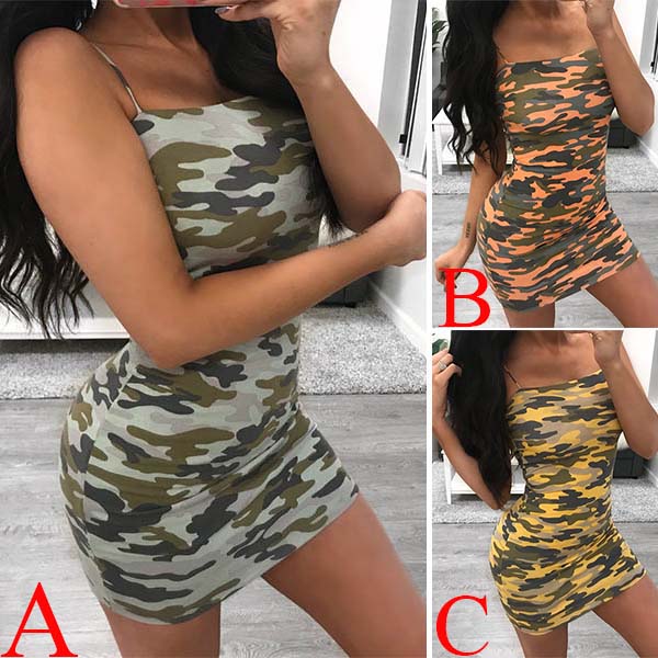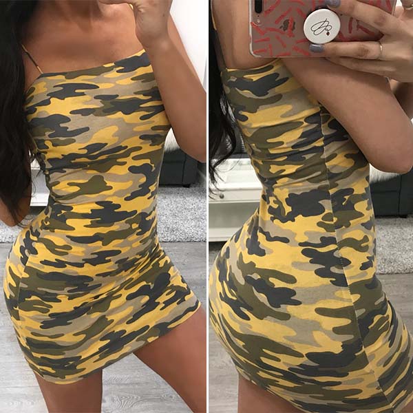 Sling style,designed with backless and a fit silhouette,sexy and charming. The camouflage printed design