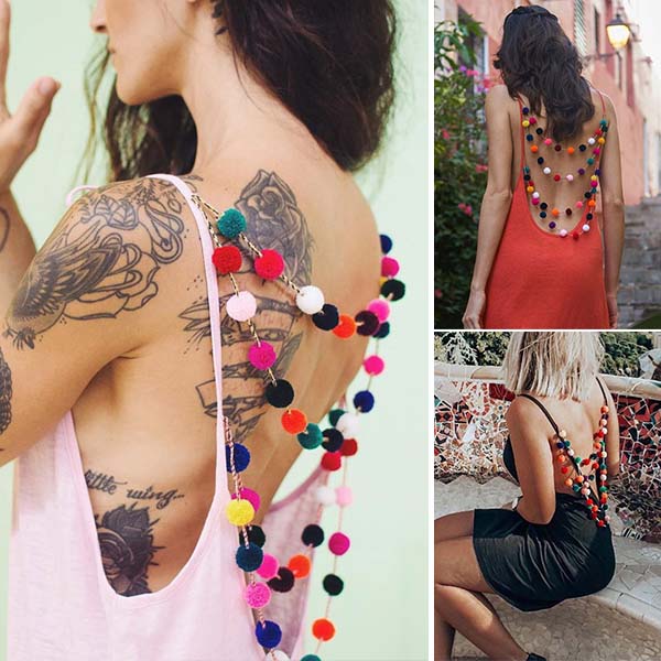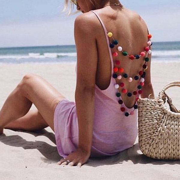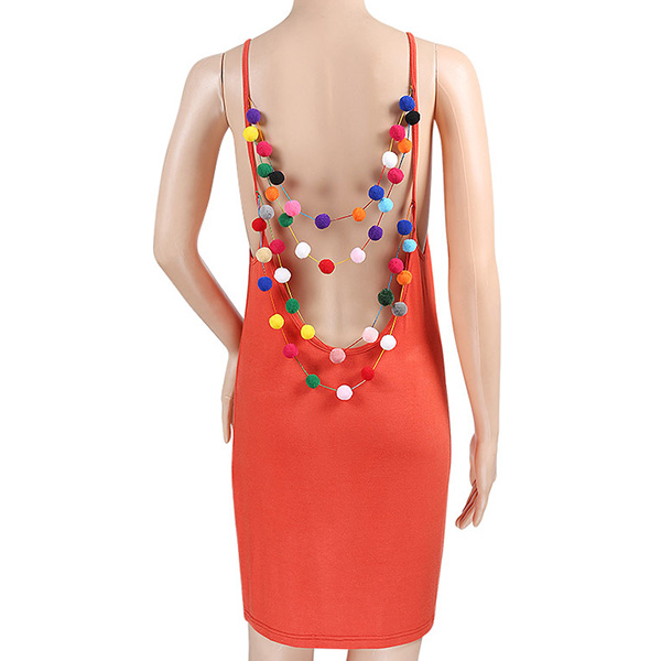 It is not difficult to be the focus when you wear this dress. Sling style,the backless and colorful hairball