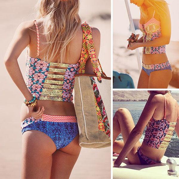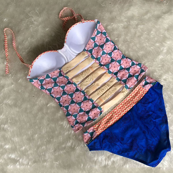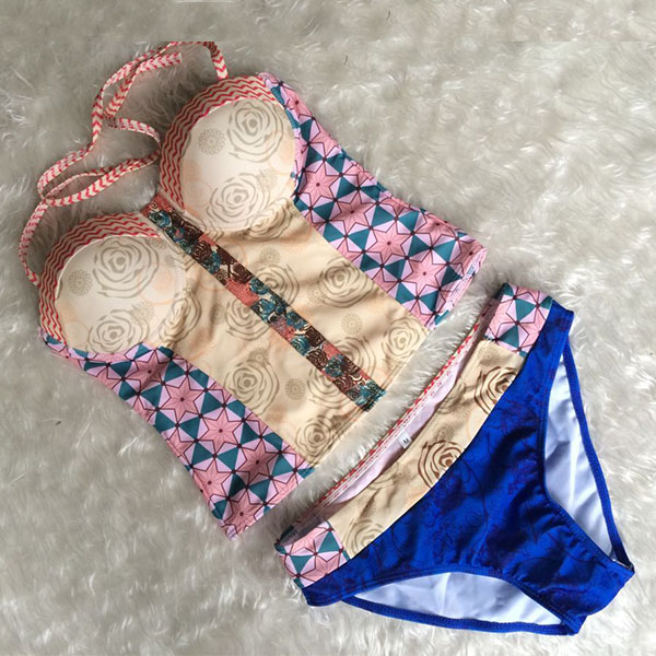 bikini top and a low-waist bikini bottom,its colorful printed pattern design makes it look more eye-catching.