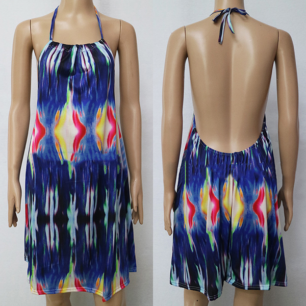 with backless design,sexy and alluring. Its colorful printed design makes this piece look more eye-catching.