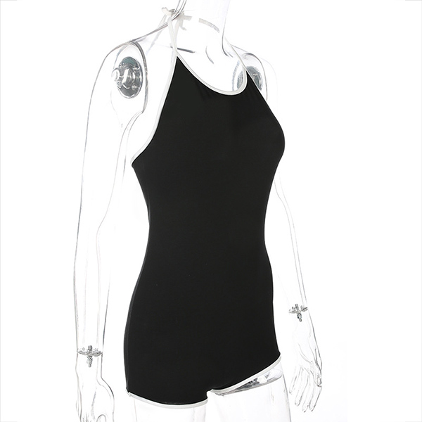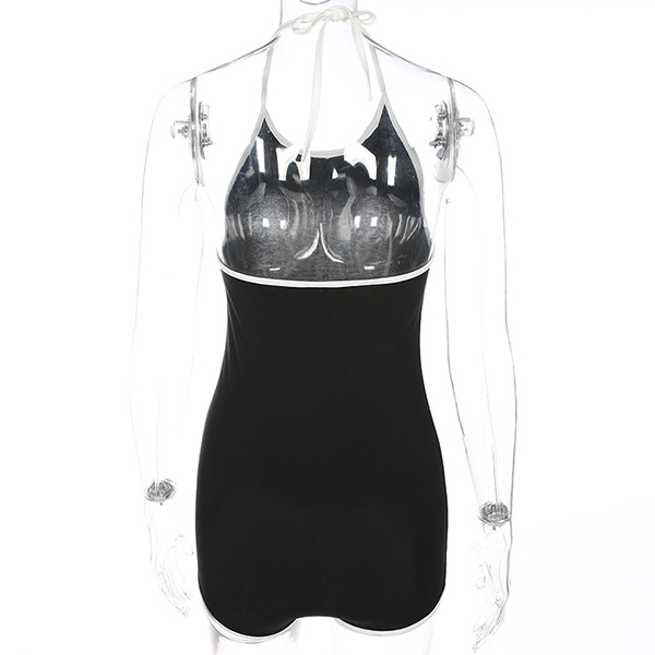 Enjoy the sum-soaked summer days with this romper. Halter style,with backless and contrast color