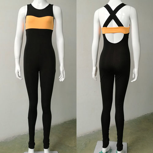 sports jumpsuit. Contrast color style,designed with backless and a fit silhouette. And its soft