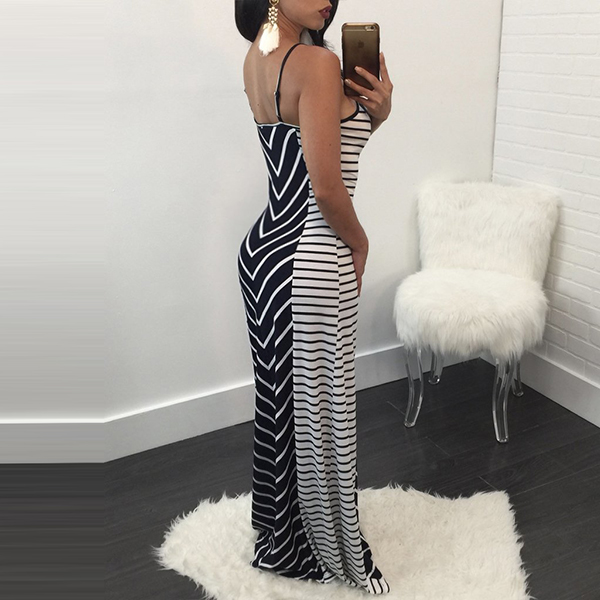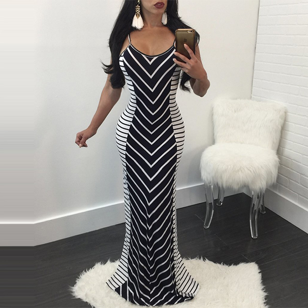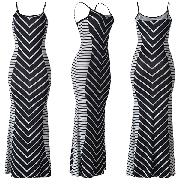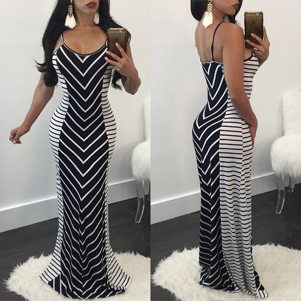 Sling style,its contrast color striped design can easily help you win more eyes,while the backless and a maxi length design
