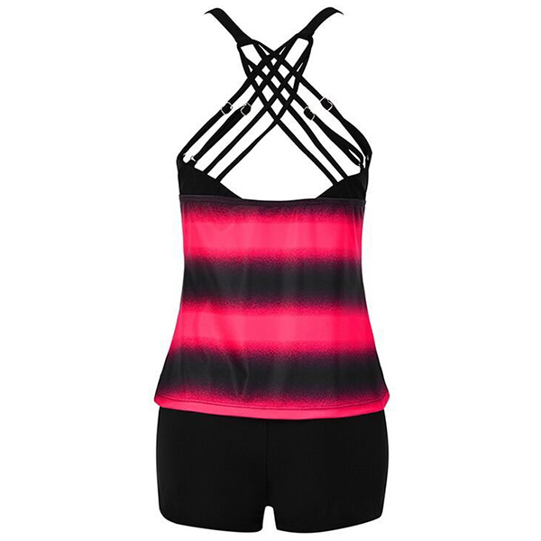Don't like too sexy swimsuit set? Then make your eyes focused on this set! The contrast color striped design makes it look so attractive,while the backless design