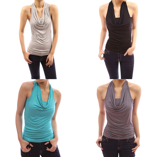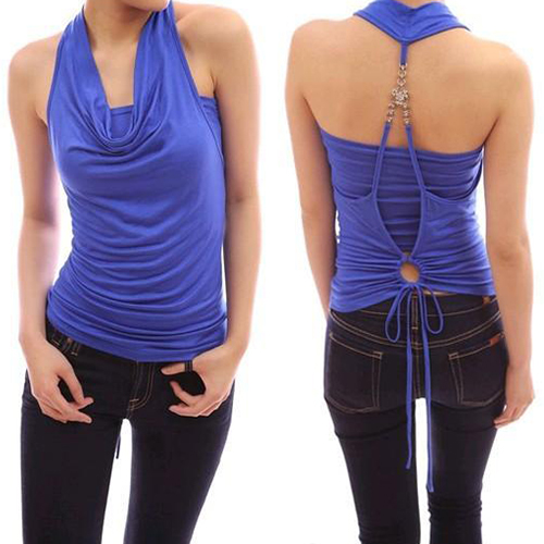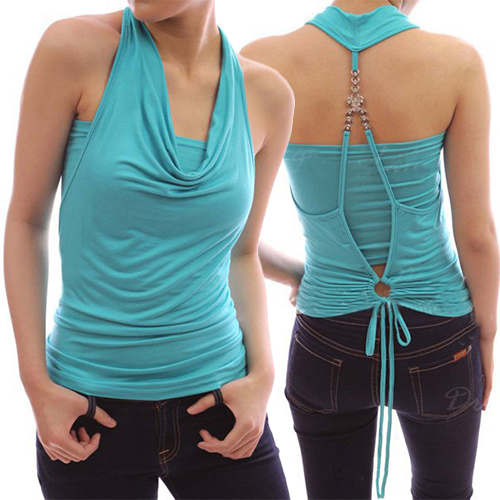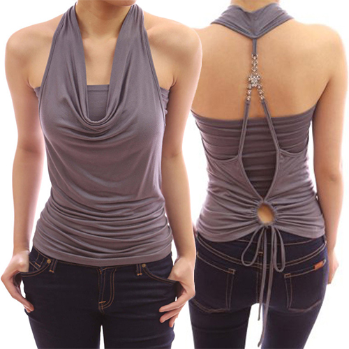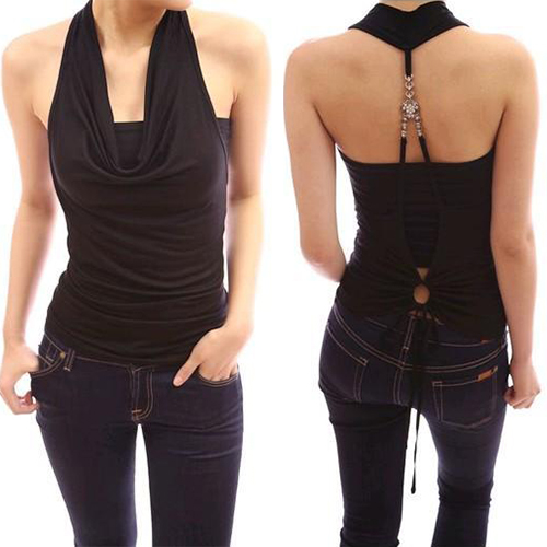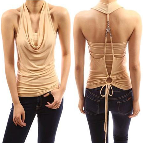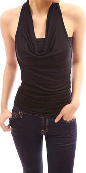 This tops consists of two parts:a backless cowl neck tops and a bandeau tops. Solid color style,