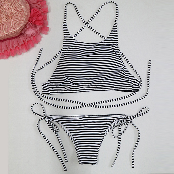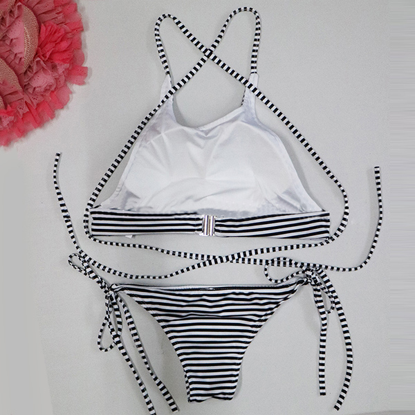 Striped style,with backless and crossover lace-up design adds some more alluring flavor.
