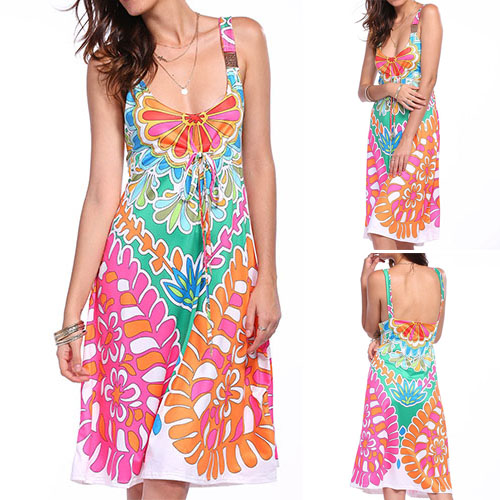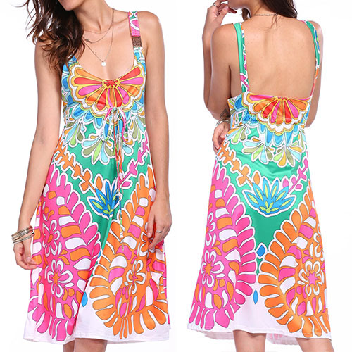 Boasting a vibrant floral print,its backless and deep U-neck design makes it look more sexy. Embrace your sun-soaked summer days with this dress.
