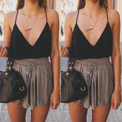 Show off your charming summer style and expose a hint of your fair skin with this cami romper. Contrast color style,