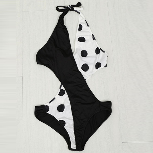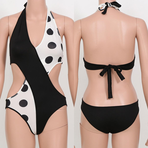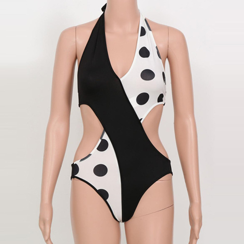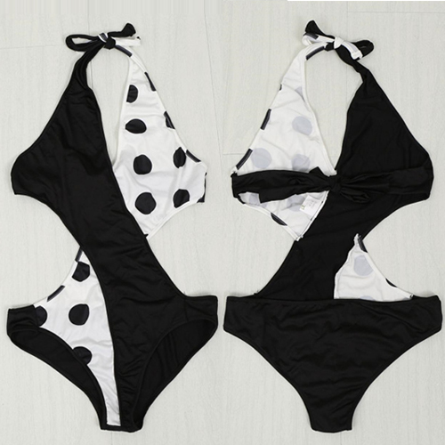 Then let this swimsuit accompany you. Dots printed style,with backless and deep v-neck