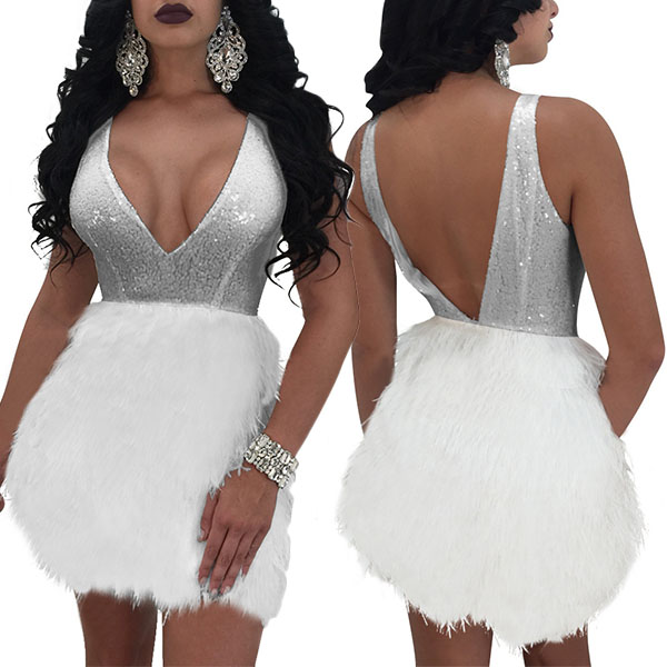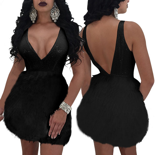 Moreover,the sequin and faux fur spliced design make this piece more distinctive and sparkle.