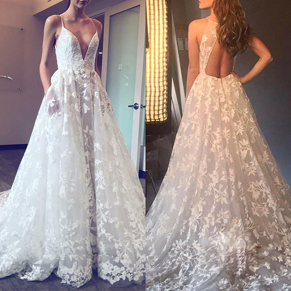 Every girl needs a sexy and feminine dress in her closet to take her to fancy events like wedding receptions and holiday parties, and this lace dress would be a good choice. Sling style,with backless,deep v-neck and a floor-length hem,this dress is the key for a sexy and alluring party look!