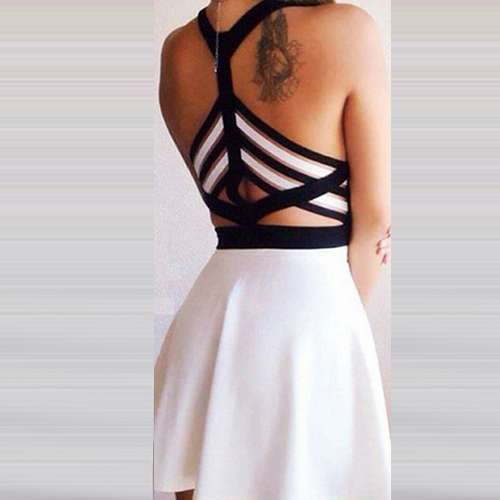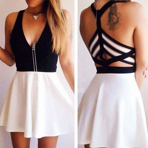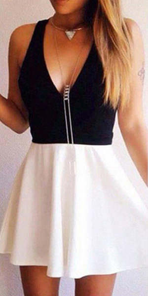 Giving you a sexy and charming look in this dress! Contrast color style,its backless and