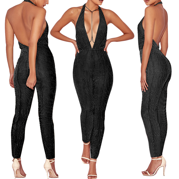 More eyes can be won once you slip into this jumpsuit. Halter style,outfitted with backless,deep v-neck,high waist and a fit