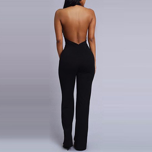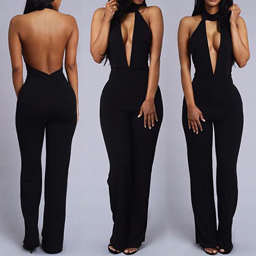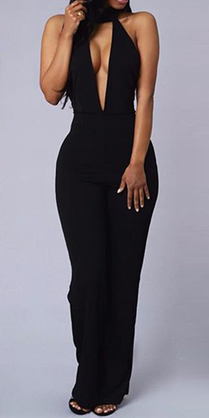 This black jumpsuit is a perfect way to show off your sexy and sultry style. Its flirty details such as backless