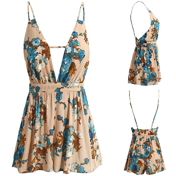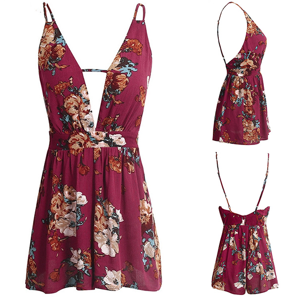 its vibrant floral print for a romantic and playful vibe,while its backless and deep v-neck design is for a seductive style.