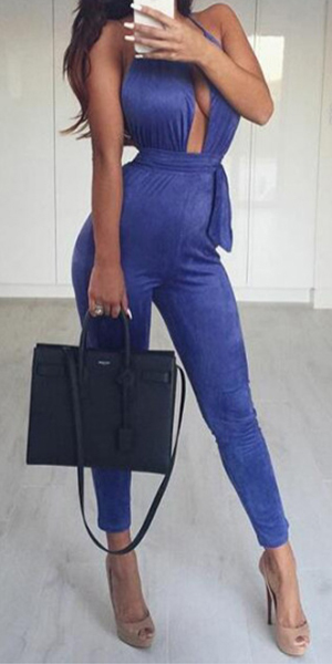 When it comes to keeping it sexy yet feminine, this jumpsuit definitely knows how to do it. Solid color style,