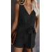 Sexy Backless Deep V-neck High Waist Solid Color Halter Romper