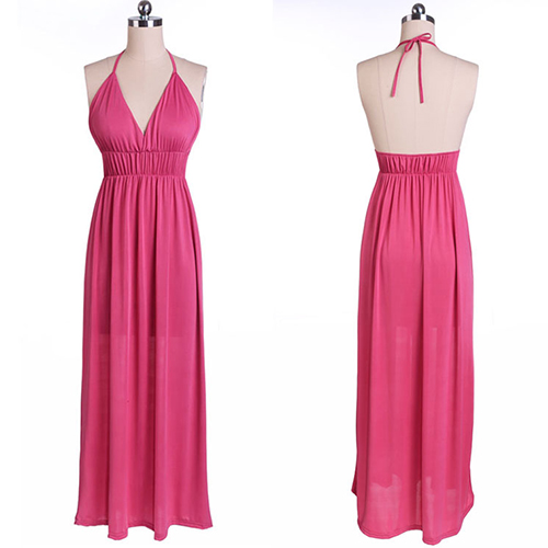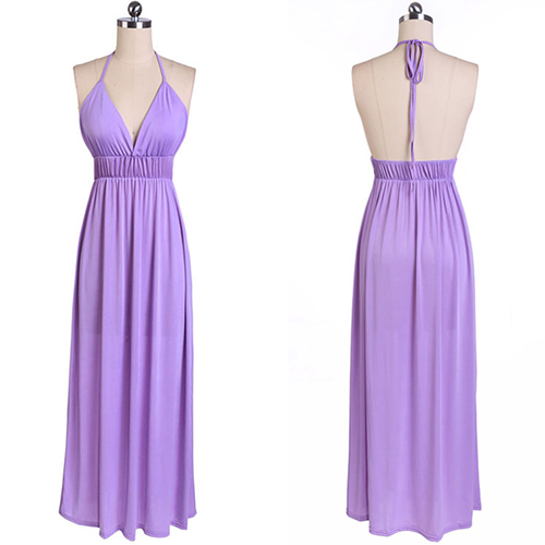 This maxi dress is a perfect choice for parties and gatherings. Solid color style,with backless and
