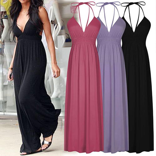 deep v-neck design makes it look so sexy and sultry. And its high waist and maxi length can give