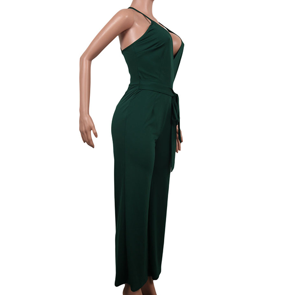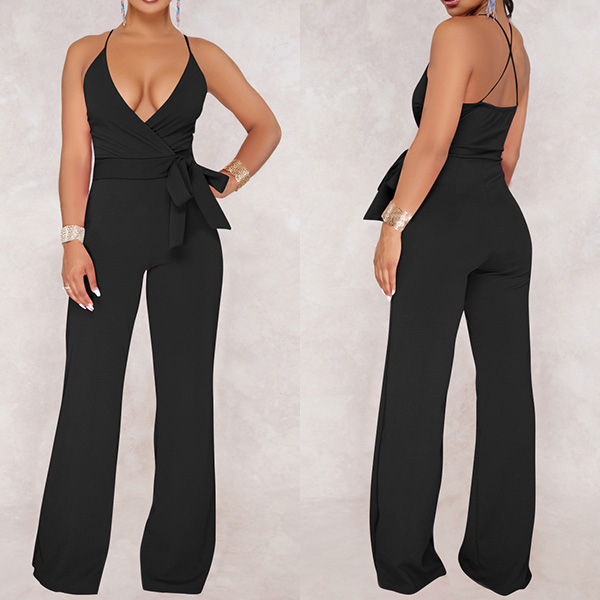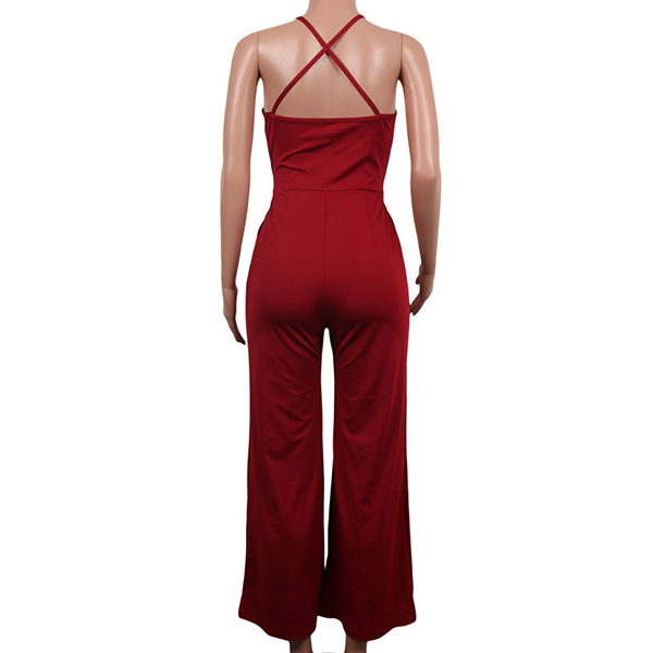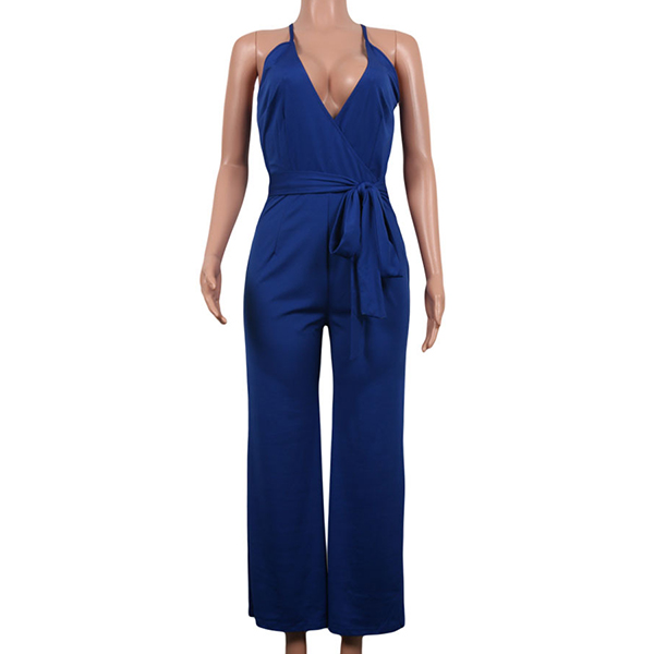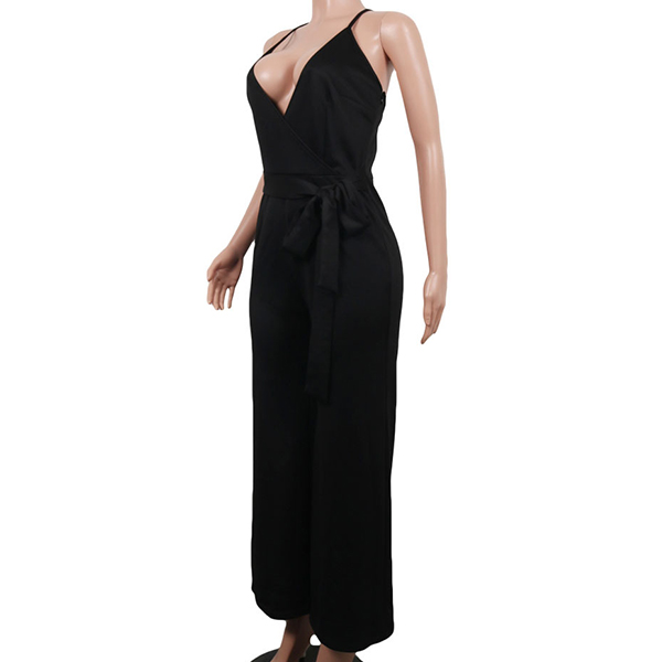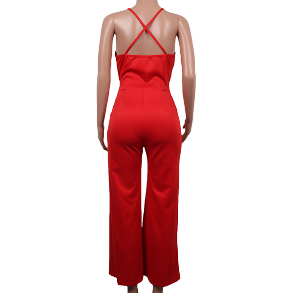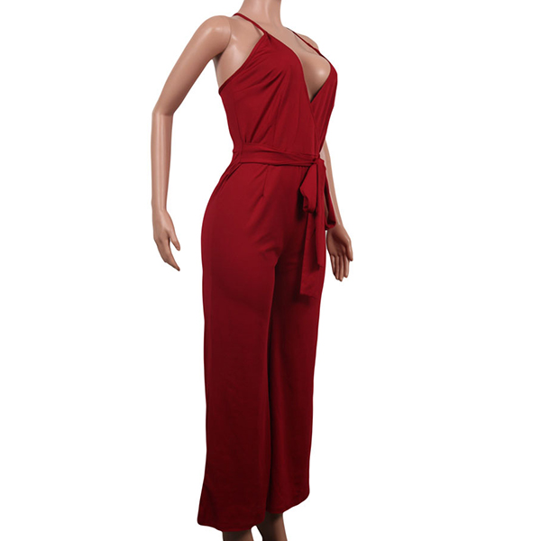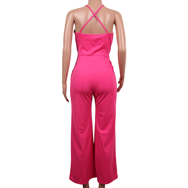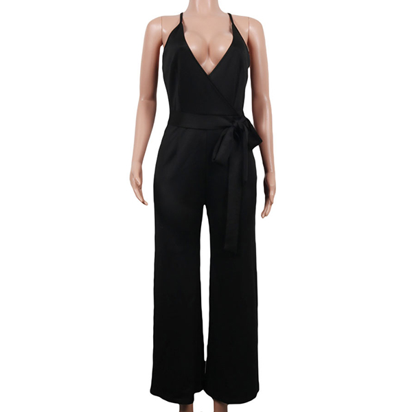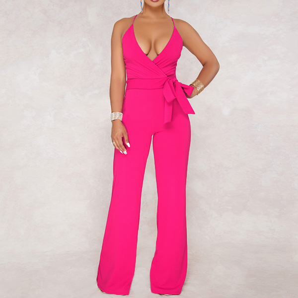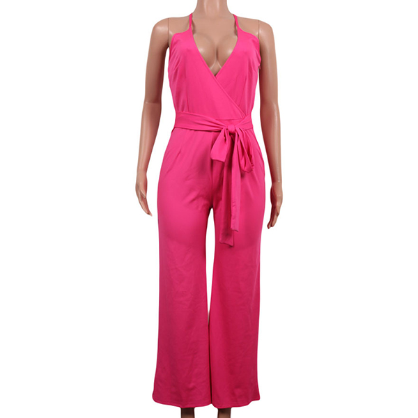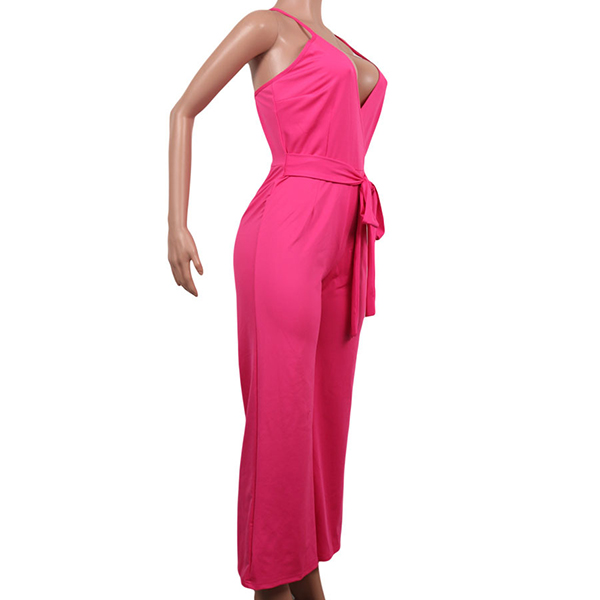 Sexy Backless Deep V-neck High Waist Solid Color Sling Jumpsuit