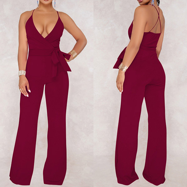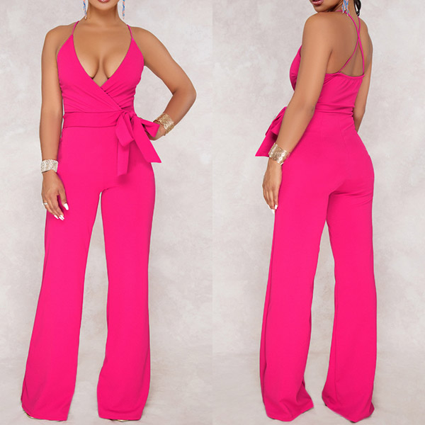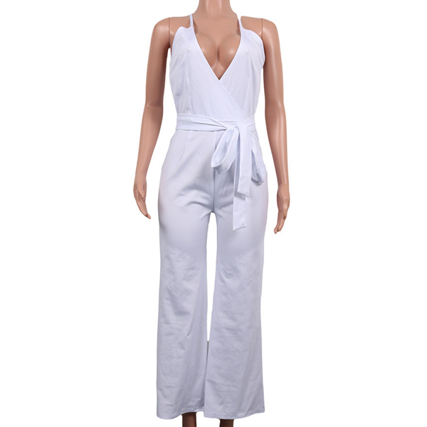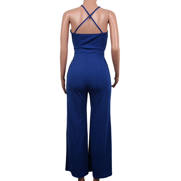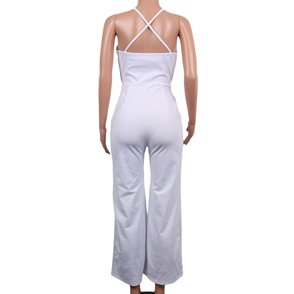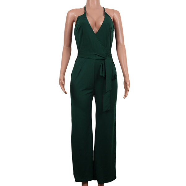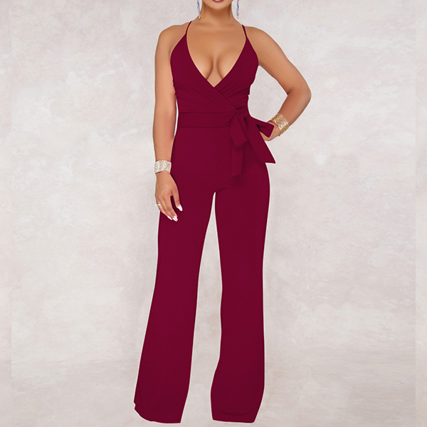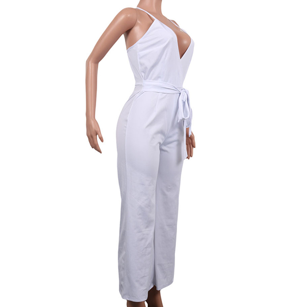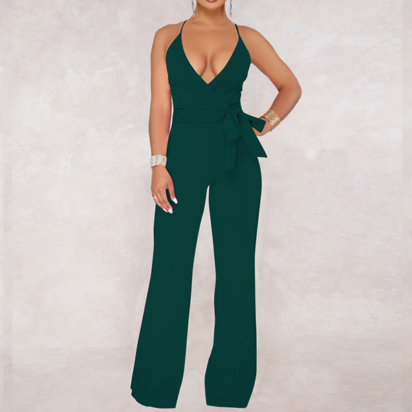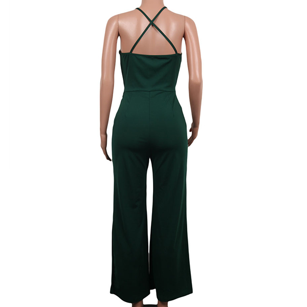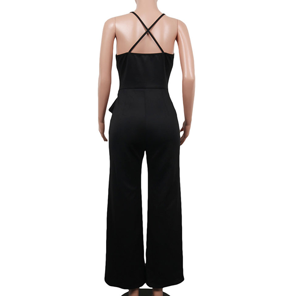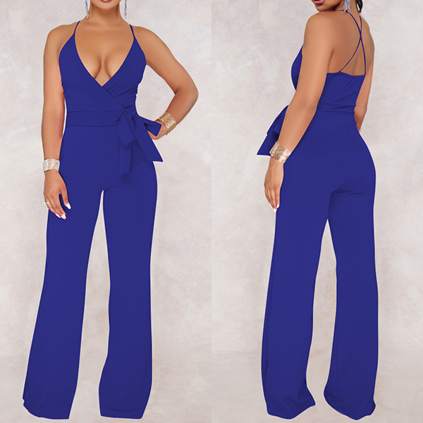 Sexy Backless Deep V-neck High Waist Solid Color Sling Jumpsuit