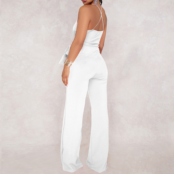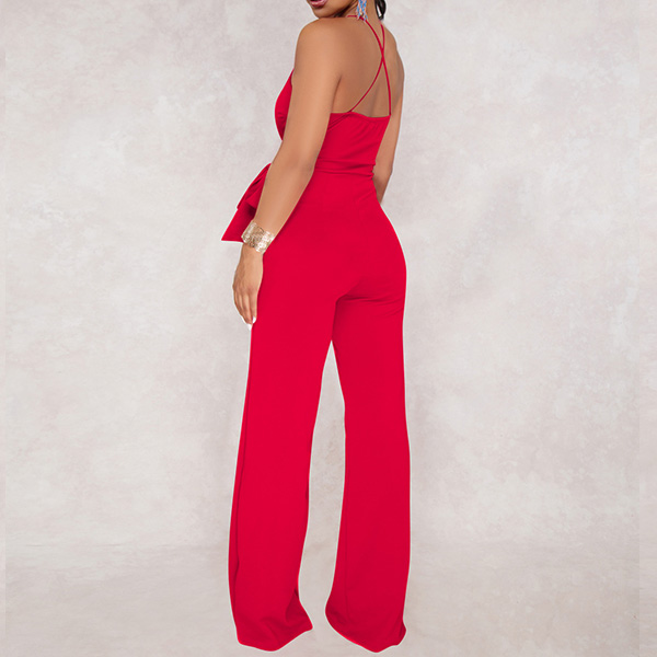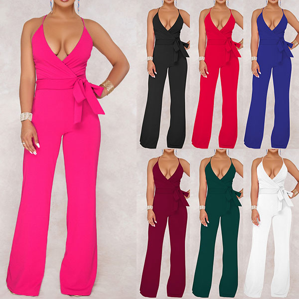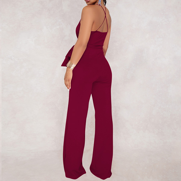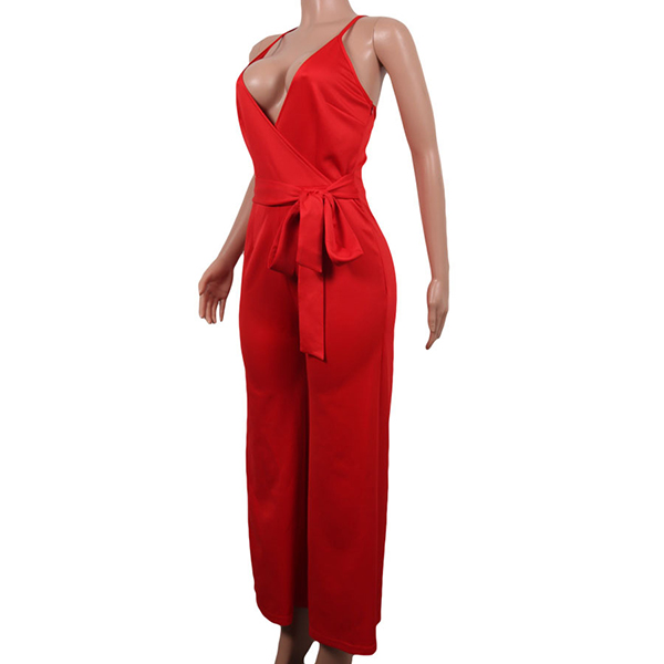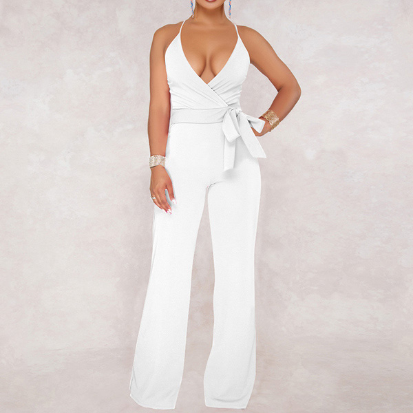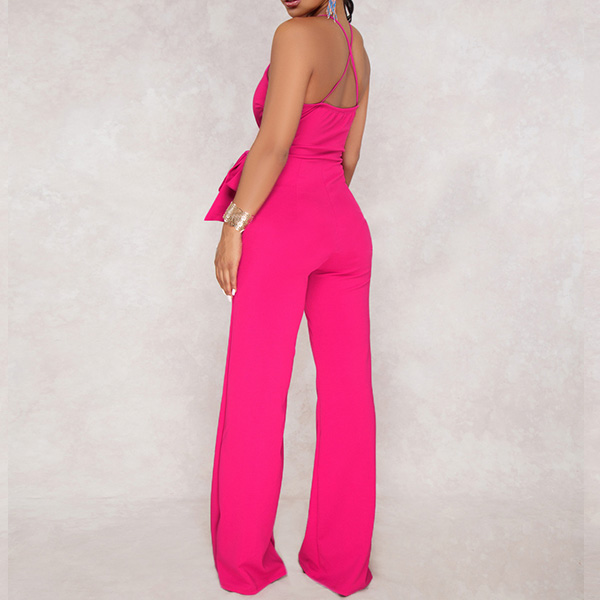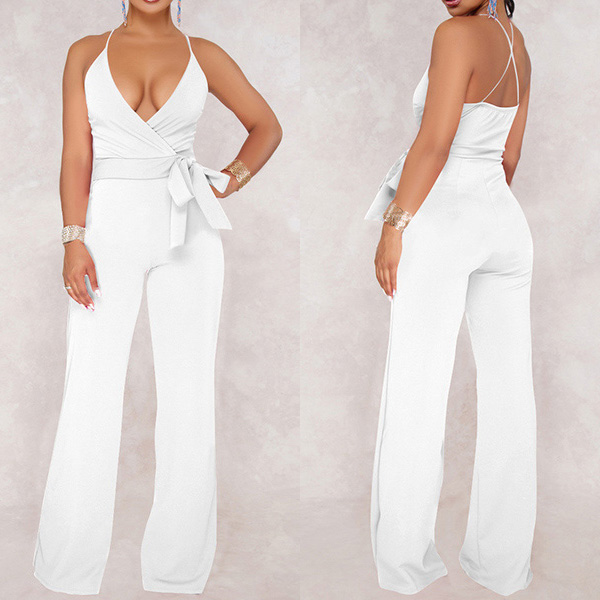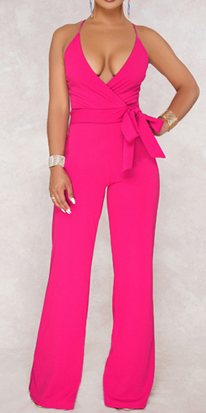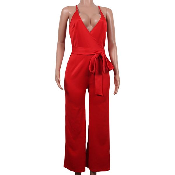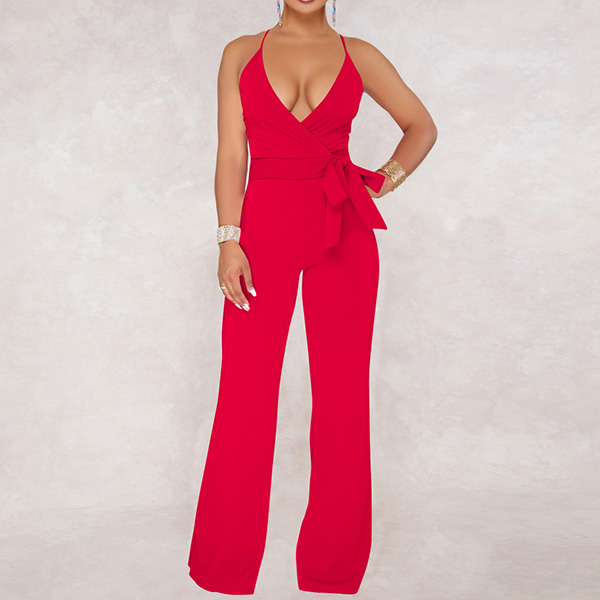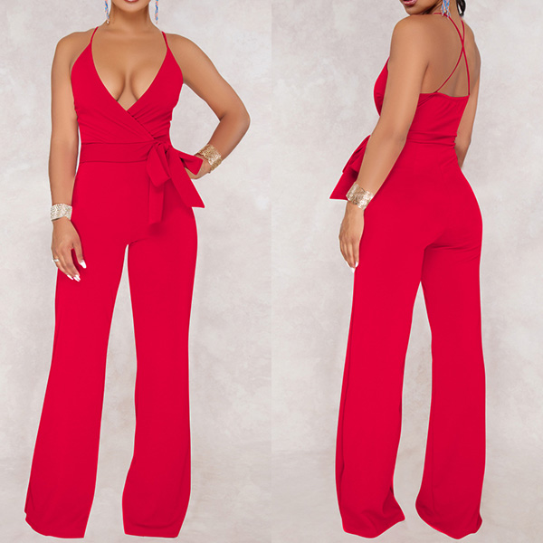 Sexy Backless Deep V-neck High Waist Solid Color Sling Jumpsuit