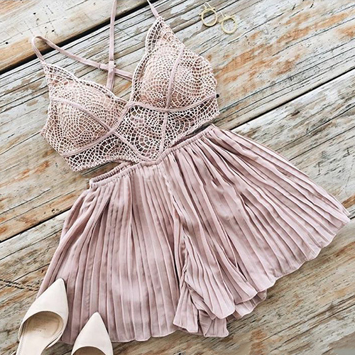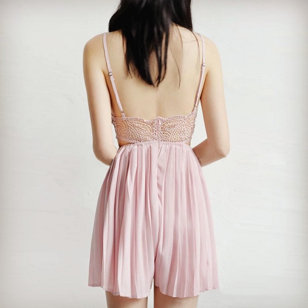 Exude a feminine and sultry appeal when you opt for this cami dress! Its alluring details such as backless, deep v-neck and hollow out lace spliced design make this dress look so flirty and sexy. Don't hesitate, slip into this dress to draw more attention.