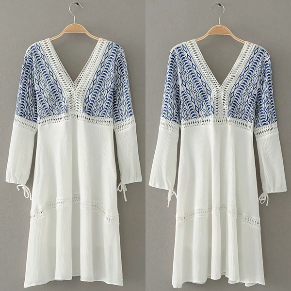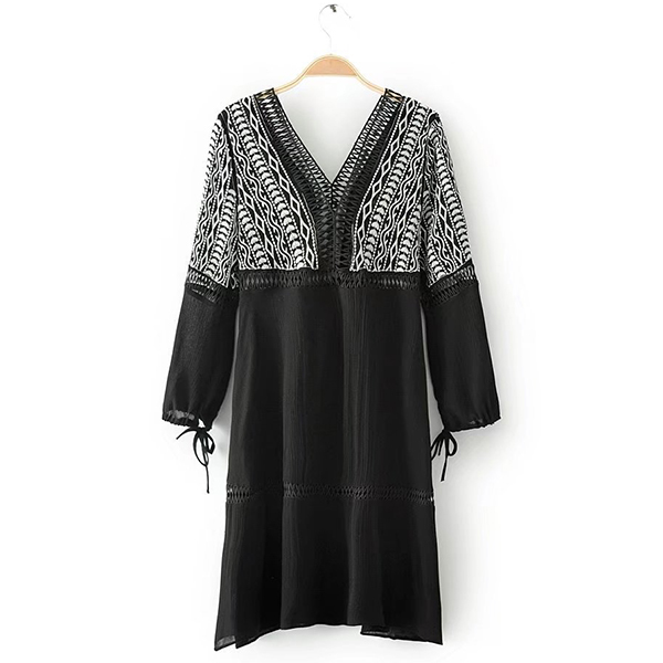 Its backless,v-neck,hollow out lace spliced and embroidered details make this piece look so sexy and appealing.