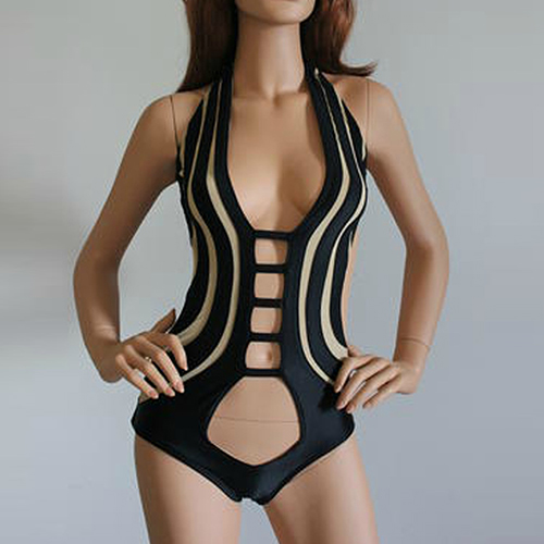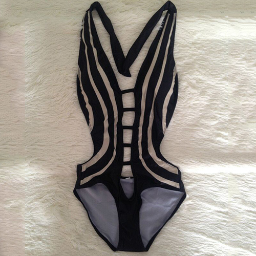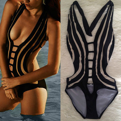 Lose none of your femininity even while swimming with sexy one-piece bikini. Its backless,deep v-neck