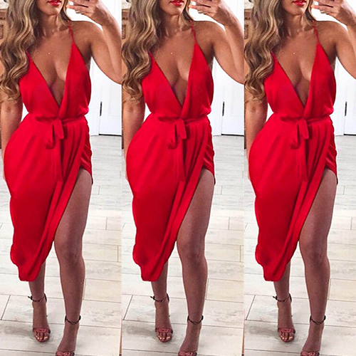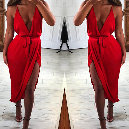 Seductive appeal comes easily once you slip into this dress. Sling style,with backless,deep v-neck