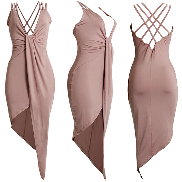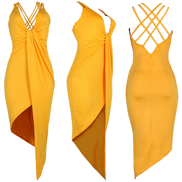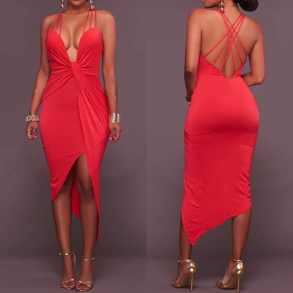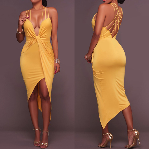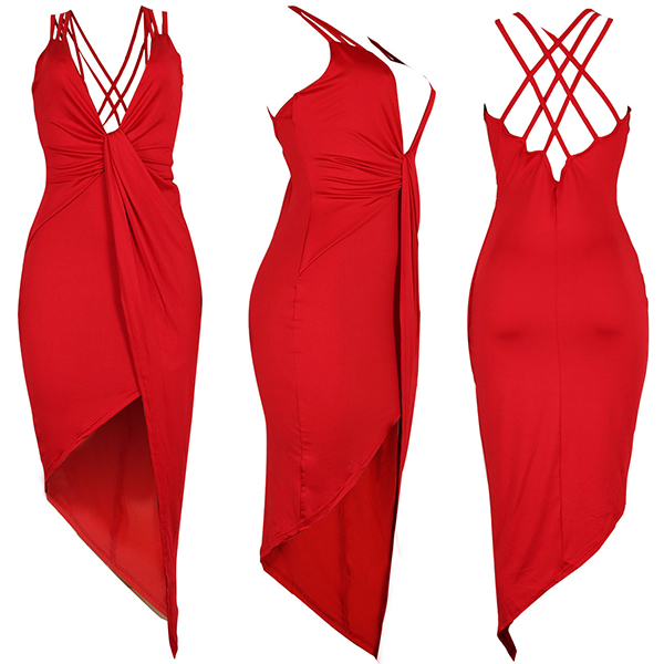 with backless,deep v-neck and an irregular hem,chic and seductive. What's more,its twisted design at front makes this
