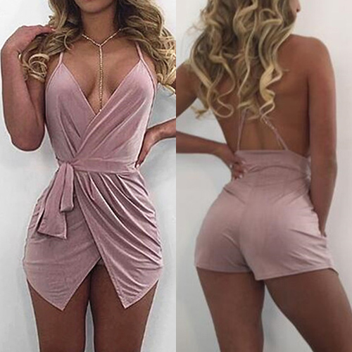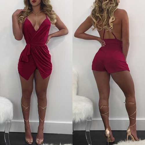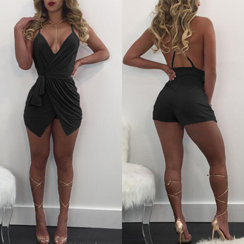 with backless,deep v-neck and an irregular hem,this romper of course is a good way to make you look