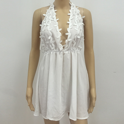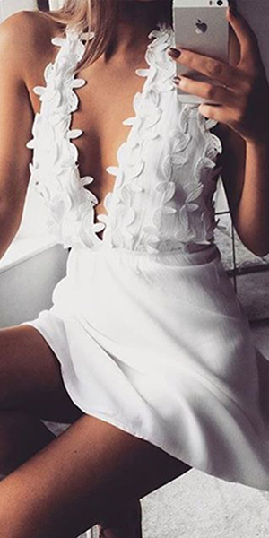 deep v-neck and lace spliced design make this dress look so feminine and eye-catching. Paired with