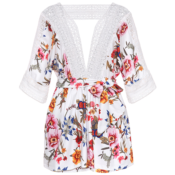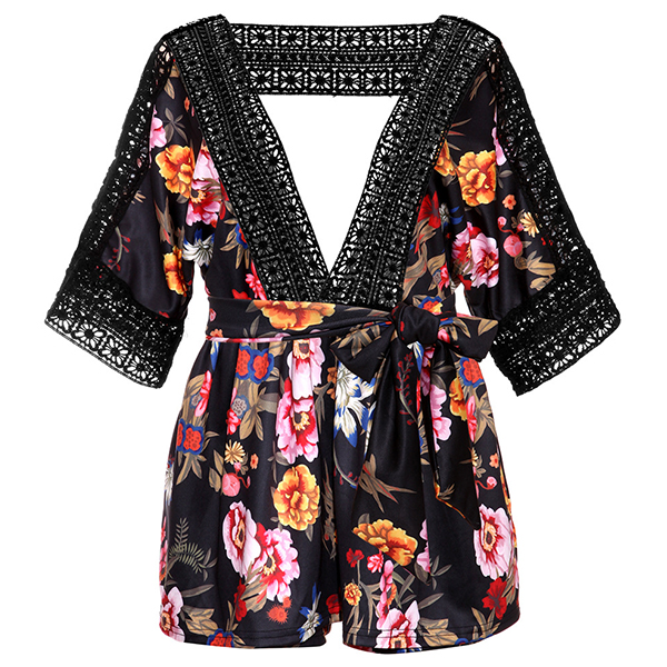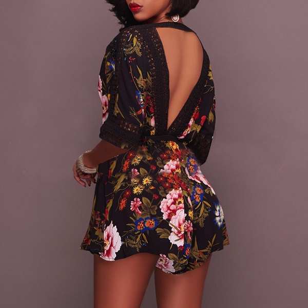 Boasts eye-catching and vibrant floral print,designed with backless,deep v-neck and lace spliced details,sexy and alluring.