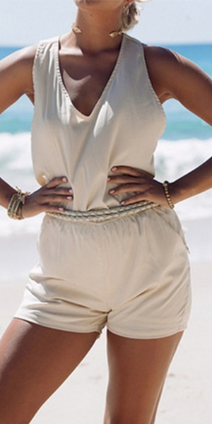 Let this wonderful romper accompany your summer. Solid color style,its backless,deep v-neck