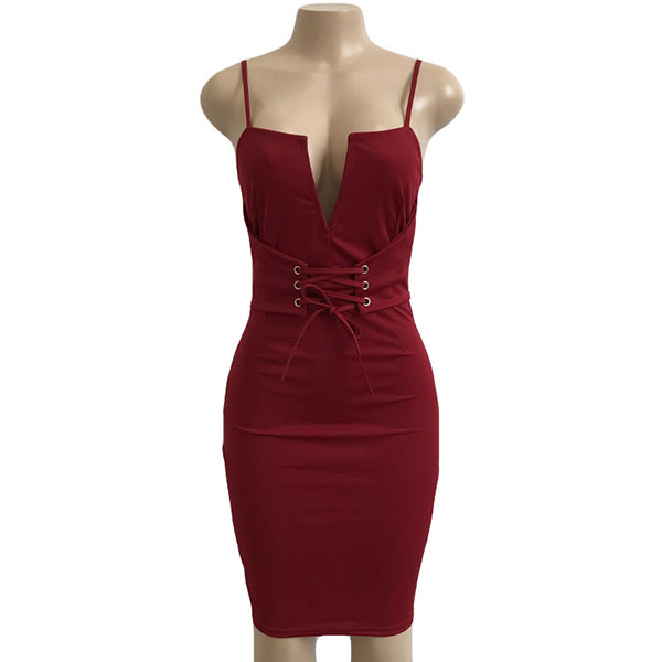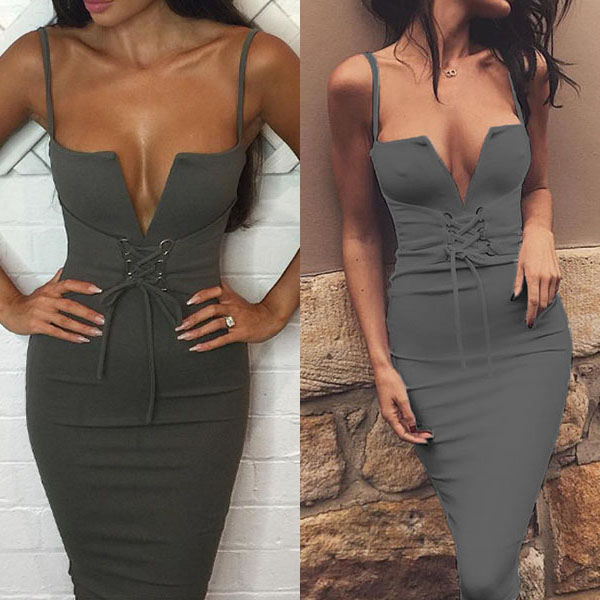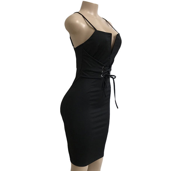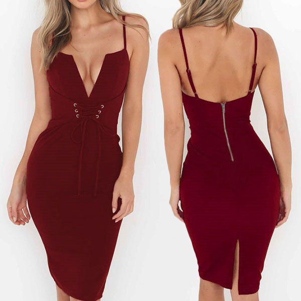 Sling style,its backless,deep v-neck and slit hem design make this piece look so sexy and seductive,while the lace-up