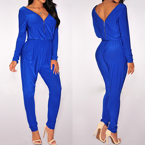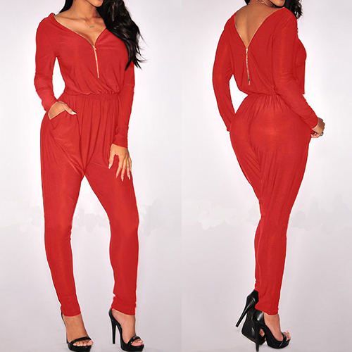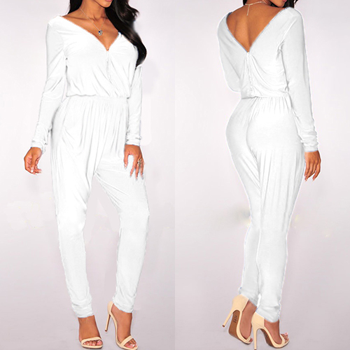 Enter and exit a room in a sultry style with the help of this jumpsuit. Solid color style,with backless,