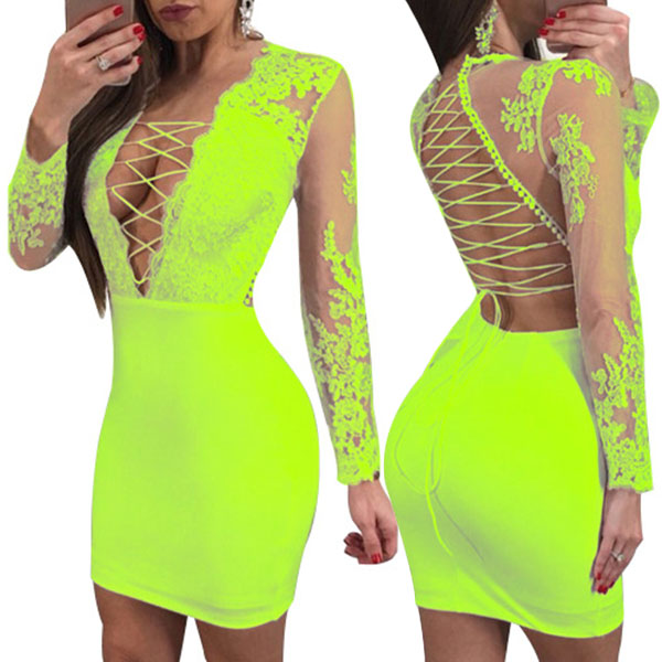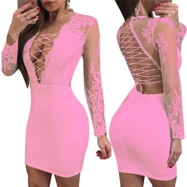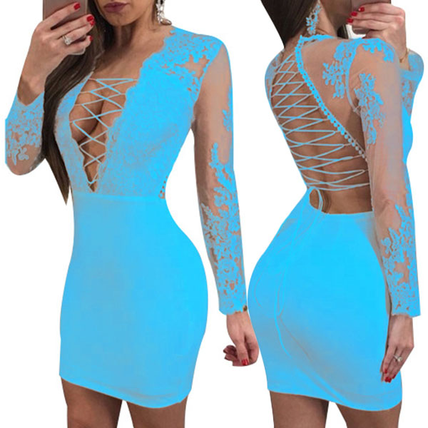 deep v-neck and lace spliced design make this piece look so sultry,while the tight silhouette design will