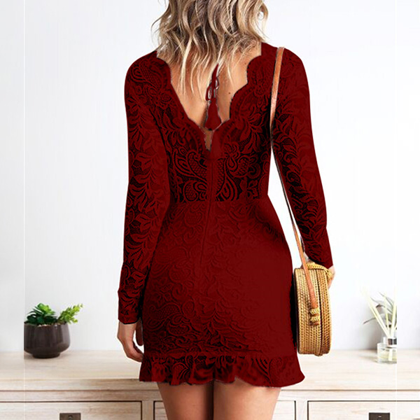 Seductive appeal can come easily once you throw yourself into this alluring lace dress!Designed with backless,deep v-neck and a fit silhouette,this piece is sure to exude your charming feminine appeal as well as your seductive curve. Your perfect partner for your night events.