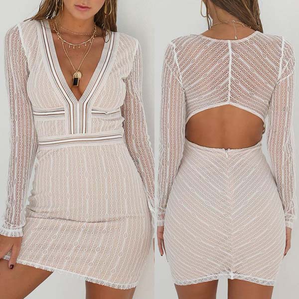 design details like backless,deep v-neck and lace spliced design make this piece look so seductive,