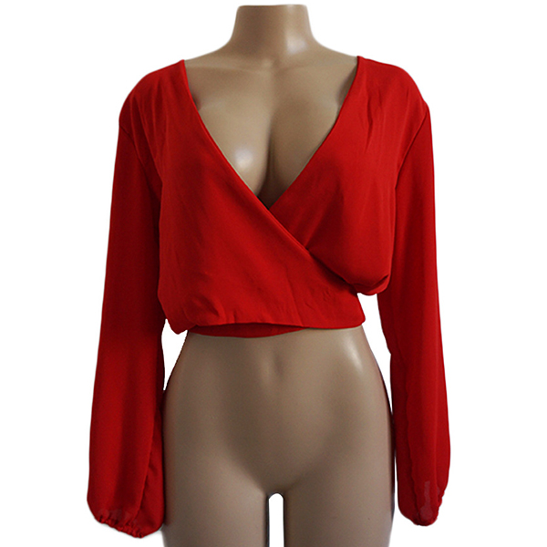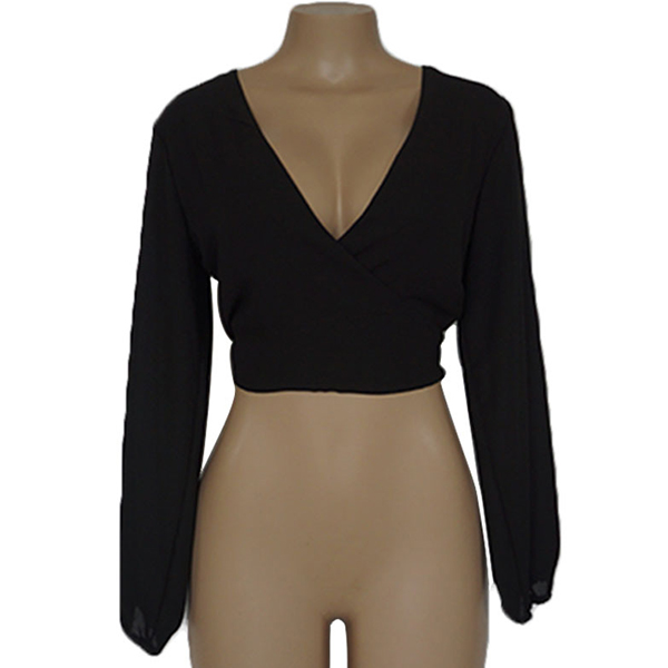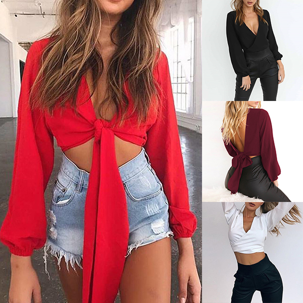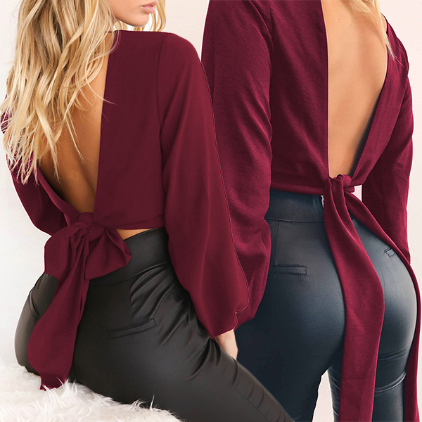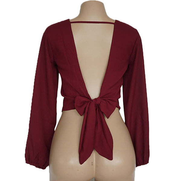 Solid color style,designed with long sleeve,backless,deep v-neck and lace-up knotted hem,sexy yet distinctive.