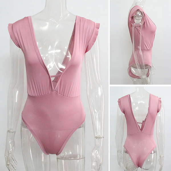 Solid Color style,designed with backless,deep v-neck and lotus sleeve,sexy and alluring. Once you slip into this swimsuit,