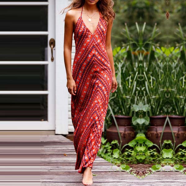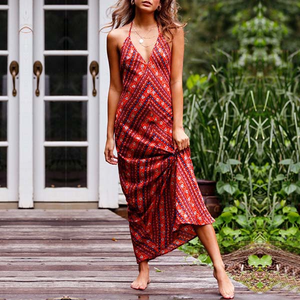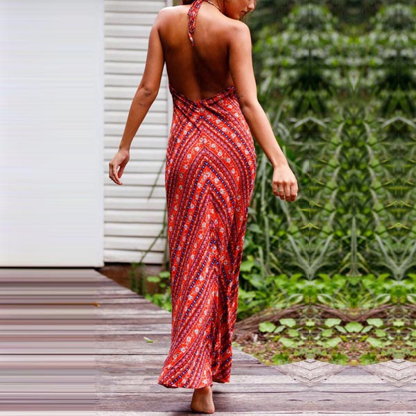 For your beach days or tropical getaways,this relaxed yet sexy dress is a good choice. Halter style,