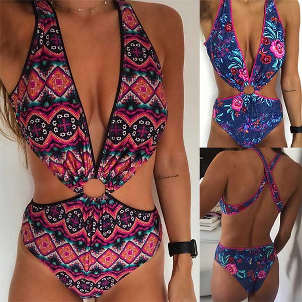 Features chic and eye-catching printed pattern,the backless and deep v-neck design make it look