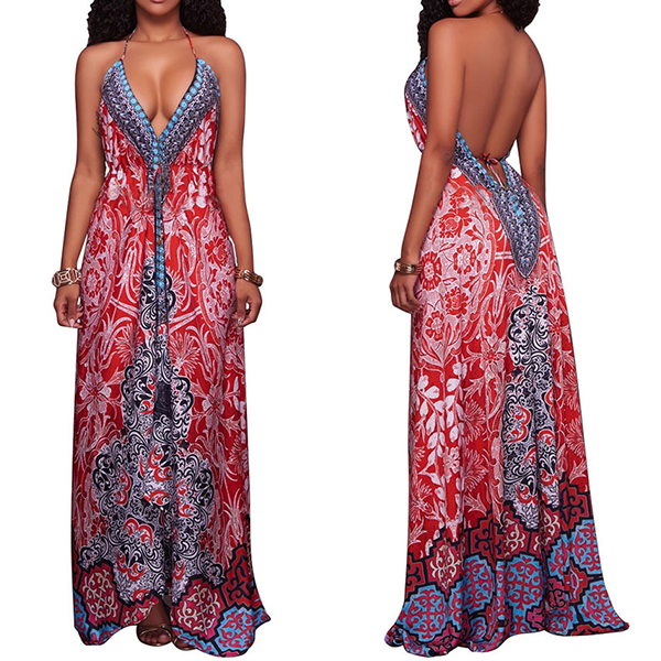 The perfect epitome of sexy and feminine,this dress will make you be a pleasant sight. Boasts vibrant floral print,with backless,